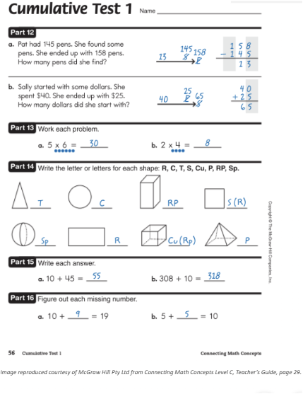 Teacher Tenya is teaching mathematics to her Year 4 students. She does not administer Cumulative Test 1 when required between lesson seventy and seventy-five. Students are not able to demonstrate their mastery over the previous lessons because they are not tested. Tenya does not have specific information about the critical skills and concepts taught in the first seventy lessons. She is not able to pinpoint which students need remedies, reteaching or reinforcement of skills or concepts. Tenya is just moving through the program not verifying mastery from the required assessments.