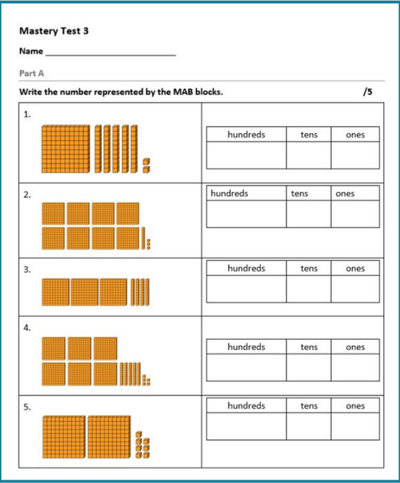 The mastery test takes approximately fifteen minutes. The teacher reads out the question from the script and students complete their answers on the mastery test handout.