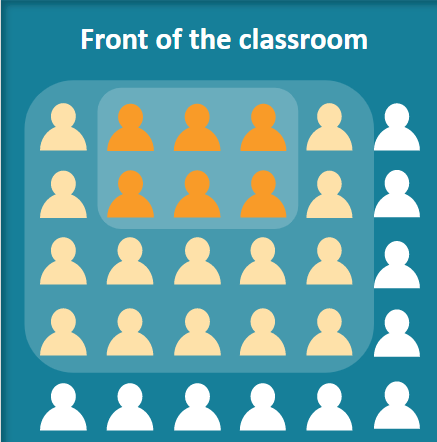 Seat students who need the most help close to the front of the room. Arrange middle performers around the lower performers. Seat highest-performing students on the periphery.
