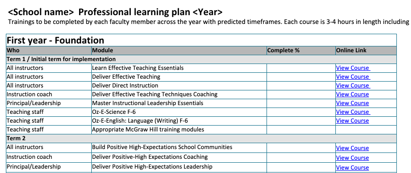 Professional Learning Plan