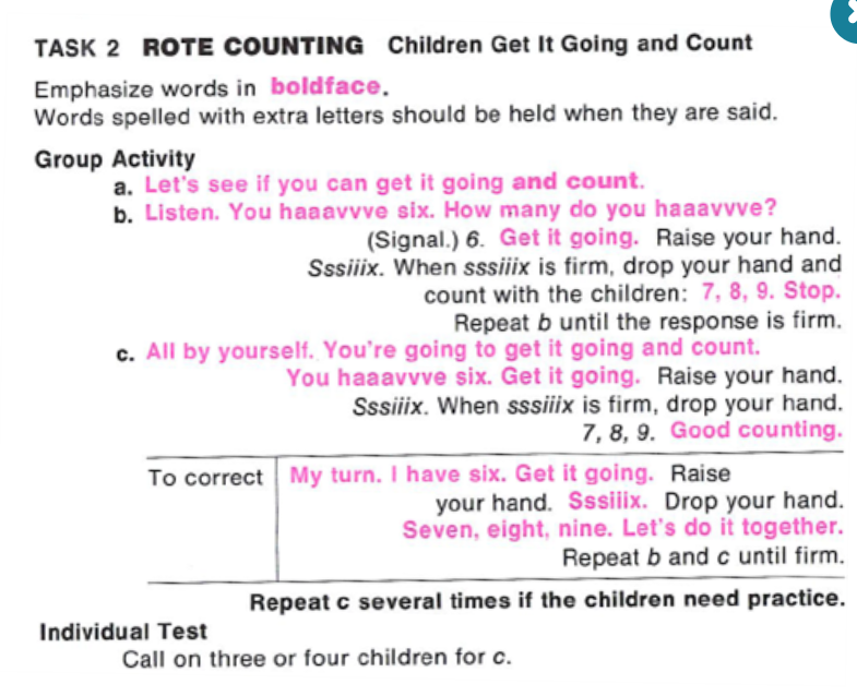 Image reproduced courtesy of McGraw Hill Pty Ltd from Distar Arithmetic, 1 Teacher Presentation Book A, page 203.