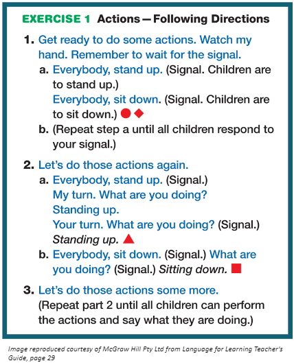 - Turn to page 23 in LFL Teacher’s Guide. Practise teaching Exercise 1, using the hand-drop signal.