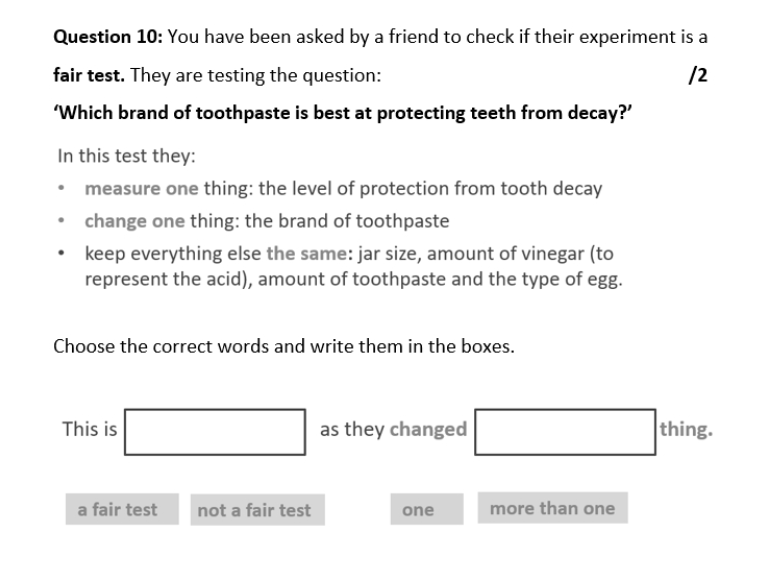 Teachers give progress tests at the end of every second lesson. At the end of the unit, students complete two assessments: Science Understanding and Science Inquiry Skills.