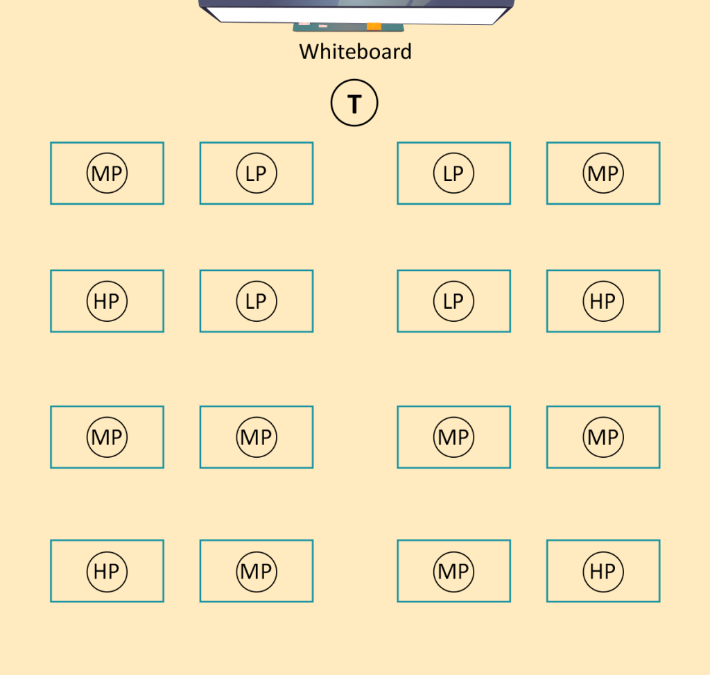 Students can easily get into pair-share partners. Pair-share partners contain a low performing student with a medium or high performing student depending on the students in the group. Two low performing students should not be paired together.