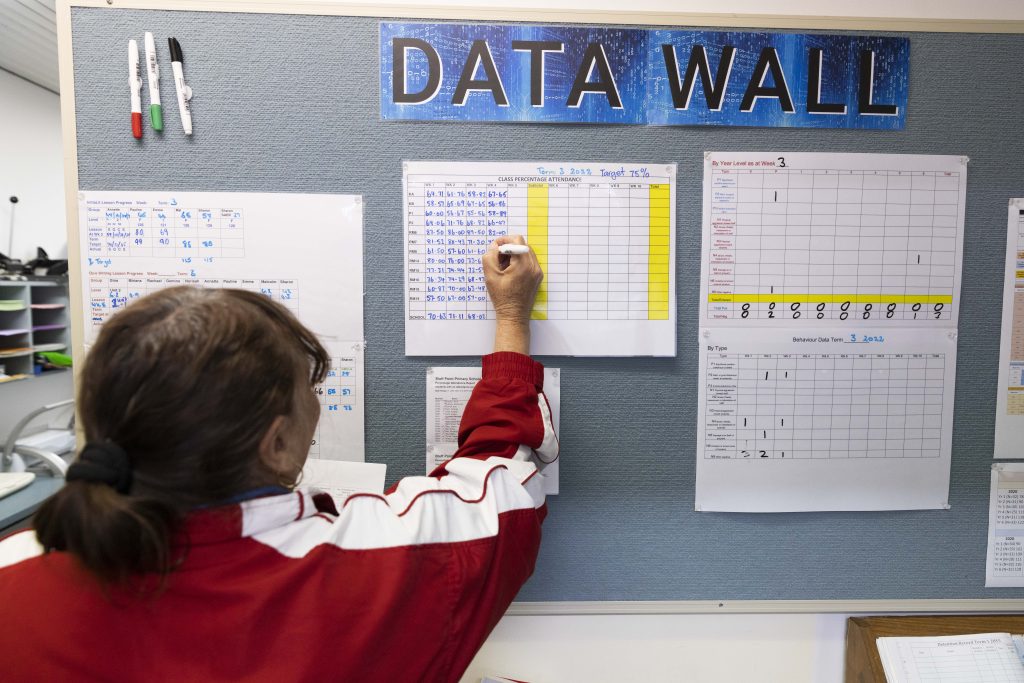 Agatha, the teacher, is meeting with a parent to discuss Christopher’s progress. Christopher is a student who has been struggling with his basic addition and subtraction facts. Agatha discusses the different strategies she has been using to help Christopher: flashcards, games and direct instruction. He practises his facts daily and Agatha has been administering daily checkouts. Agatha draws the attention of the parent to the data wall where they can see his progress in a graph. She also pulls up his Student Profile and celebrates other successes and makes another plan for areas he may be needing remediation.