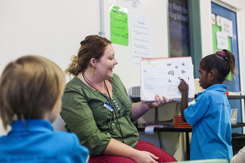 Teacher, Ariel, firms students on all sounds in a sound production exercise. Two sounds have been particularly difficult for students. She announces, ‘Time to shine,’ points to one of the sounds, gives think time and asks, ‘What sound? Tuan’. Tuan correctly says the sound. Ariel responds by saying, ‘Great saying rrrr Tuan. That was a tough one’