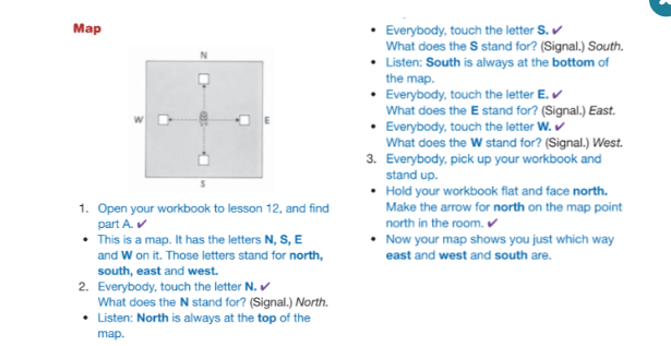 - At lesson eight, add signs for East and West and lead Students through activities.