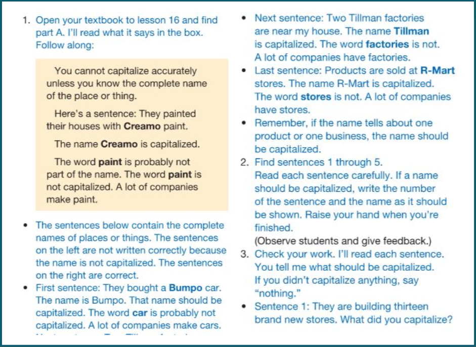 - The teacher says, ‘Open your textbook to lesson sixteen and find part A. I’ll read what it says in the box. Follow along.’