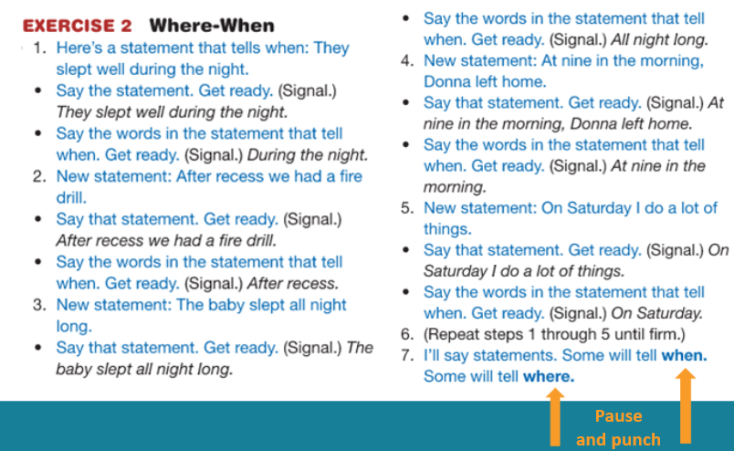 The script is delivered in a normal speaking tone, but the teacher sometimes emphasises words through ‘pause and punch’, which draws students’ attention to important points.