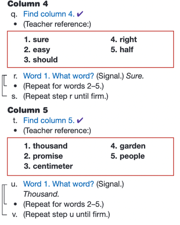 - Focus – ‘Word 1.’ The teacher checks that all students are on the first word before beginning.