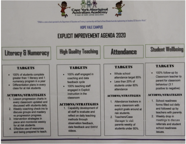 When a principal sets, manages and reviews the SIP, they build a high expectations culture in their school. They are the driving force behind the school culture of improvement. The principal creates a school environment in which committing to continuous improvement and reflecting on one’s practice is not only normalised, but an expectation. They ensure the teaching teal complete improvement actions and promote their high expectations through the staff. This provides an example for students to follow and improve their learning progress.