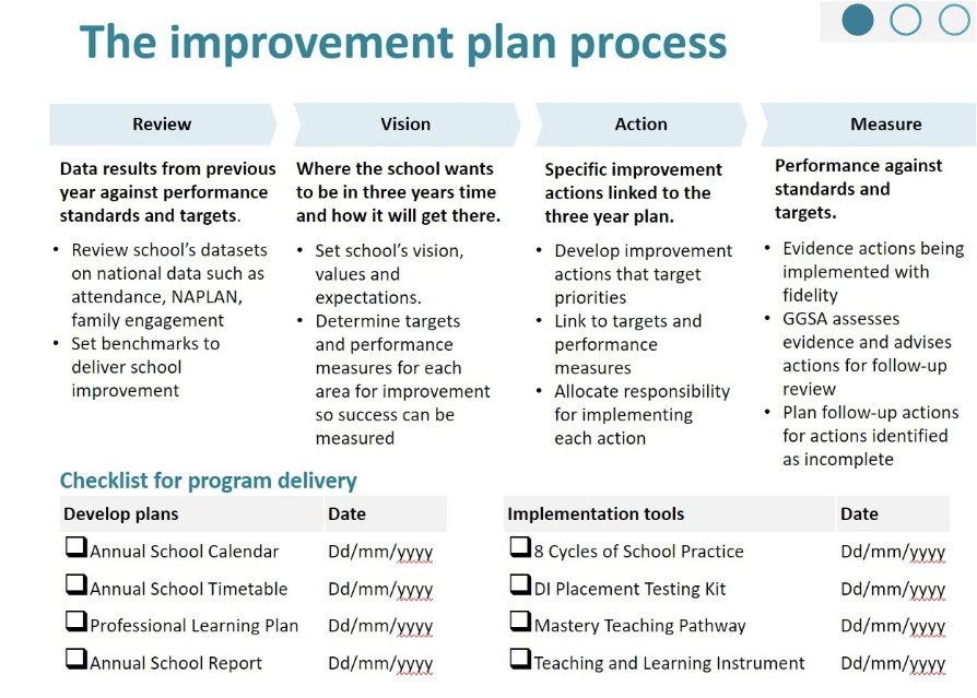 • Principal notes whether each task was actioned or not, what the barriers were and sets when it will be completed. Principal provides solutions for any unresolved high impact issues that the instruction coach has not been able to resolve with teaching team members.