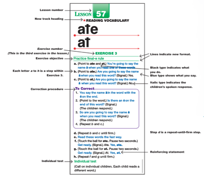 The presentation books use several type faces and other scripting conventions. The script says what the teacher does, and what the students say.