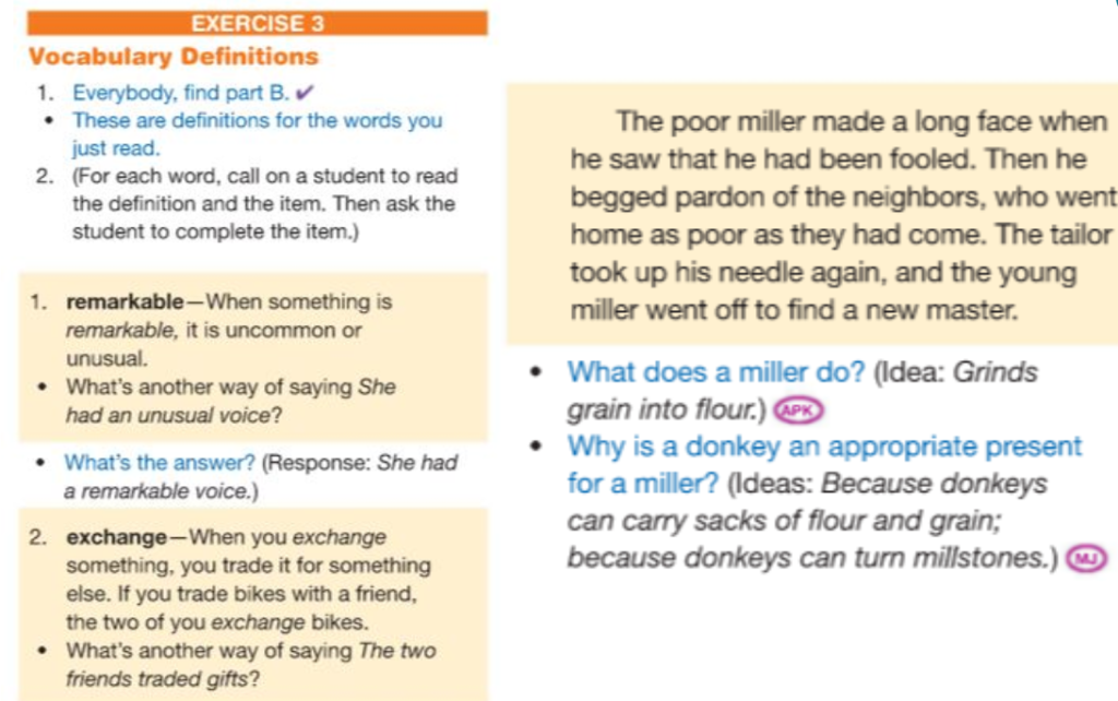 The Presentation Books use several typefaces and other script conventions. The script says what you say, what you do, and what the students’ expected responses are to be.