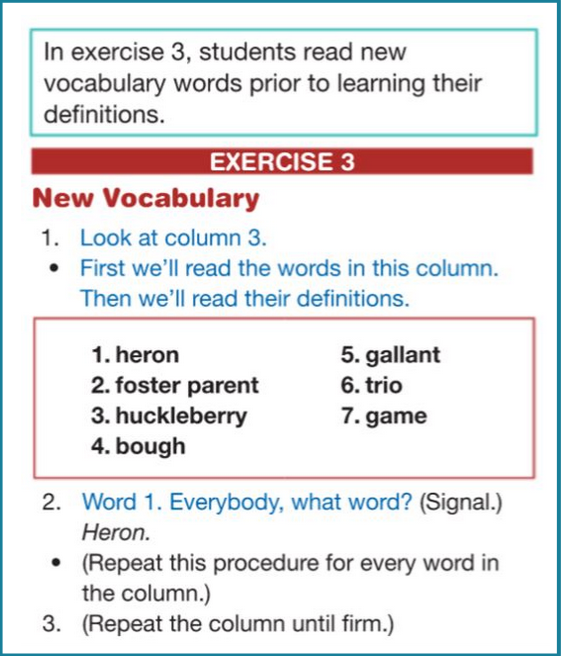 • Affirm each word that the group reads correctly. It can be hard to hear an error in large groups. Routinely affirming each word after students read it guards against the possibility of students thinking their misreading is correct.